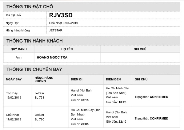 - Ngày đi: dương lịch 16/02/2019, hạ cánh lúc 10h25