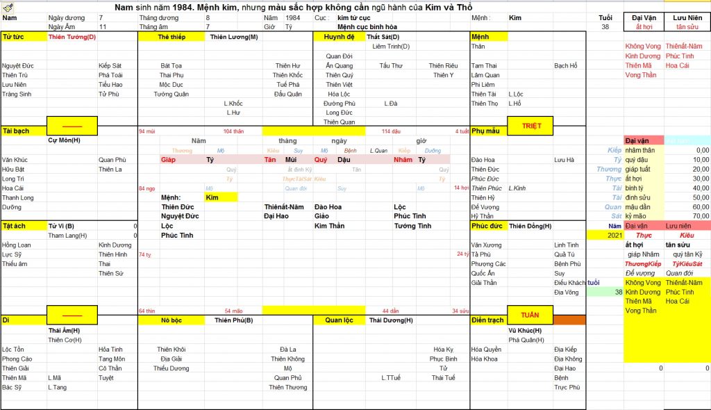 Phần này chỉ lấy màu sắc, luận giải mời quý vị đọc Phần 4 xem lá số tứ trụ Nam 1984 chi tiết