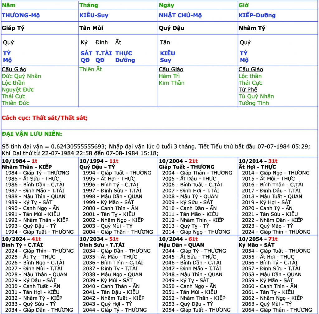 Ngày giờ tính theo Lá số Tử Vi Nam sinh năm 1984