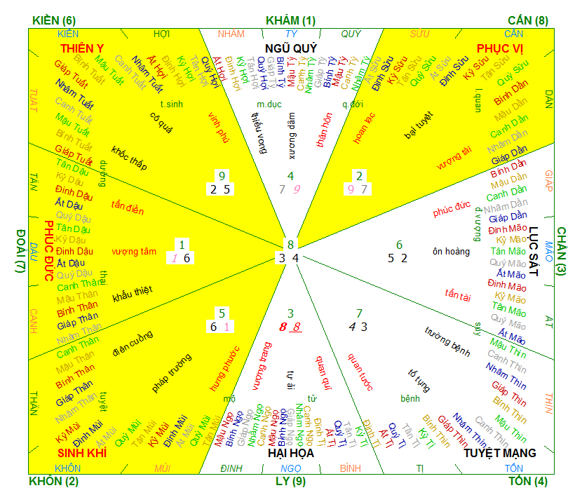 Đồ hình phong thủy 8 hướng tốt xấu cho nữ 1984