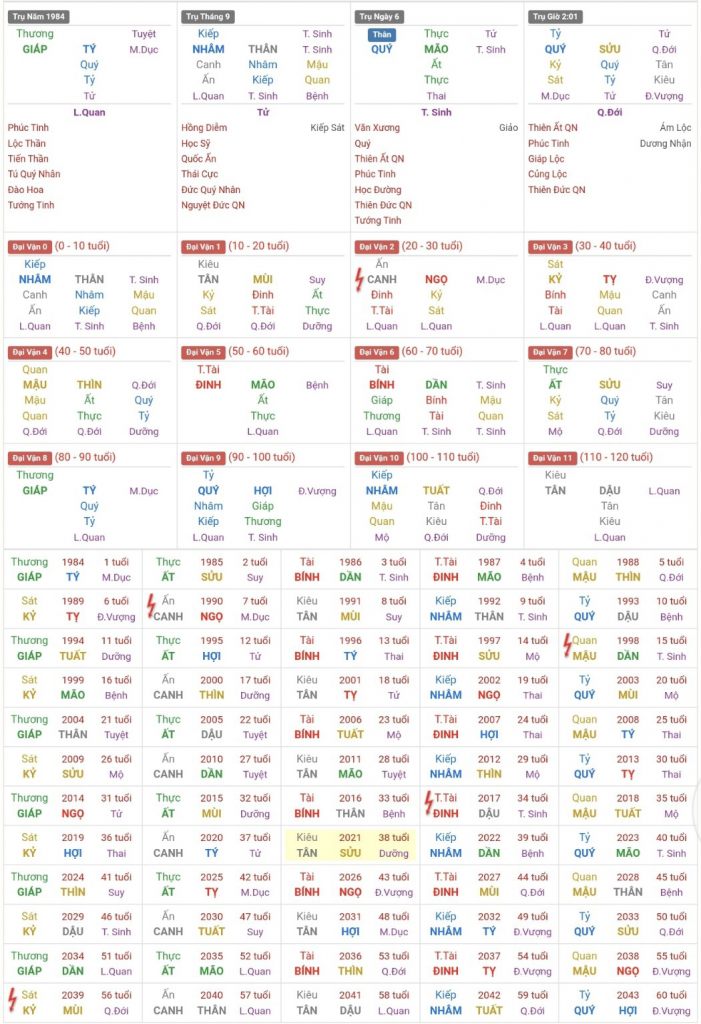 Phần này chỉ lấy màu sắc, luận giải mời quý vị đọc Phần 4 xem lá số tứ trụ nữ 1984 chi tiết