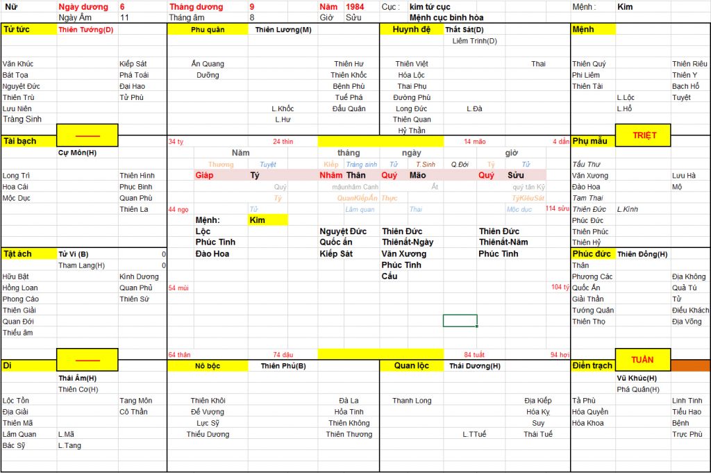 Tính theo Lá số Tứ trụ nữ 1984 kết hợp Tử vi: