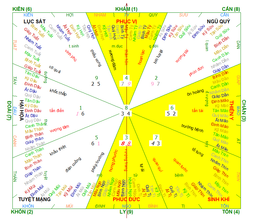 Đồ hình phong thủy 8 hướng tốt xấu cho nữ 1986