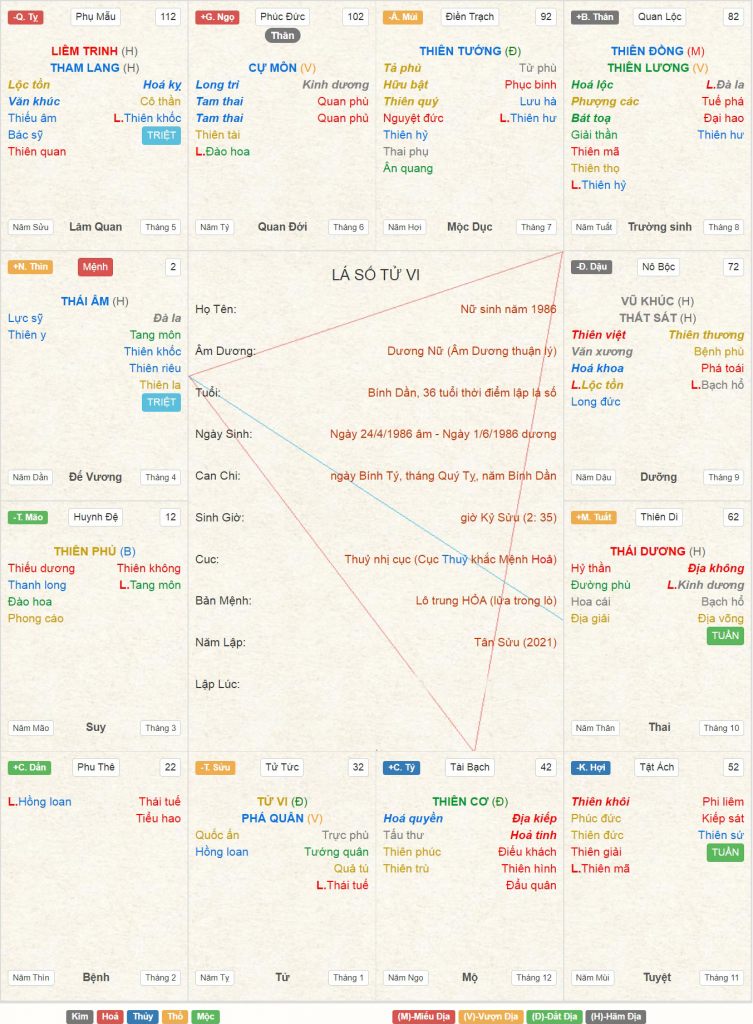 Kts Hoàng Trà lập Lá Số Tử Vi kết hợp Lá số Tứ trụ Nữ 1986