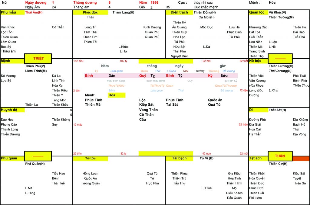 Xem lá số Tử vi kết hợp xem tứ trụ nữ 1986