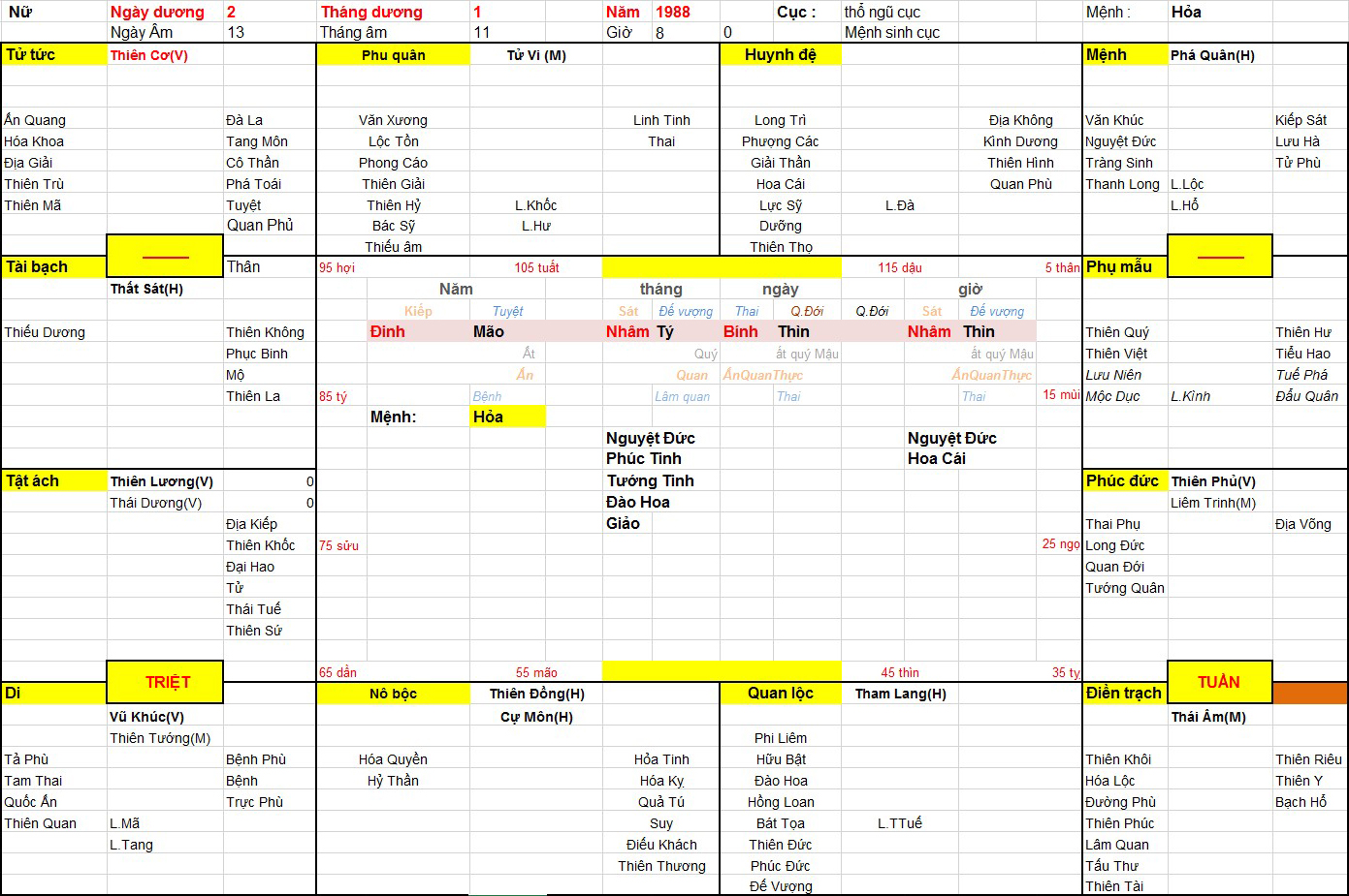 tính theo Lá số Tứ trụ Nữ 1987 kết hợp Tử vi: