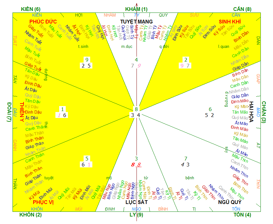 Đồ hình phong thủy 8 hướng tốt xấu cho Nữ 1987