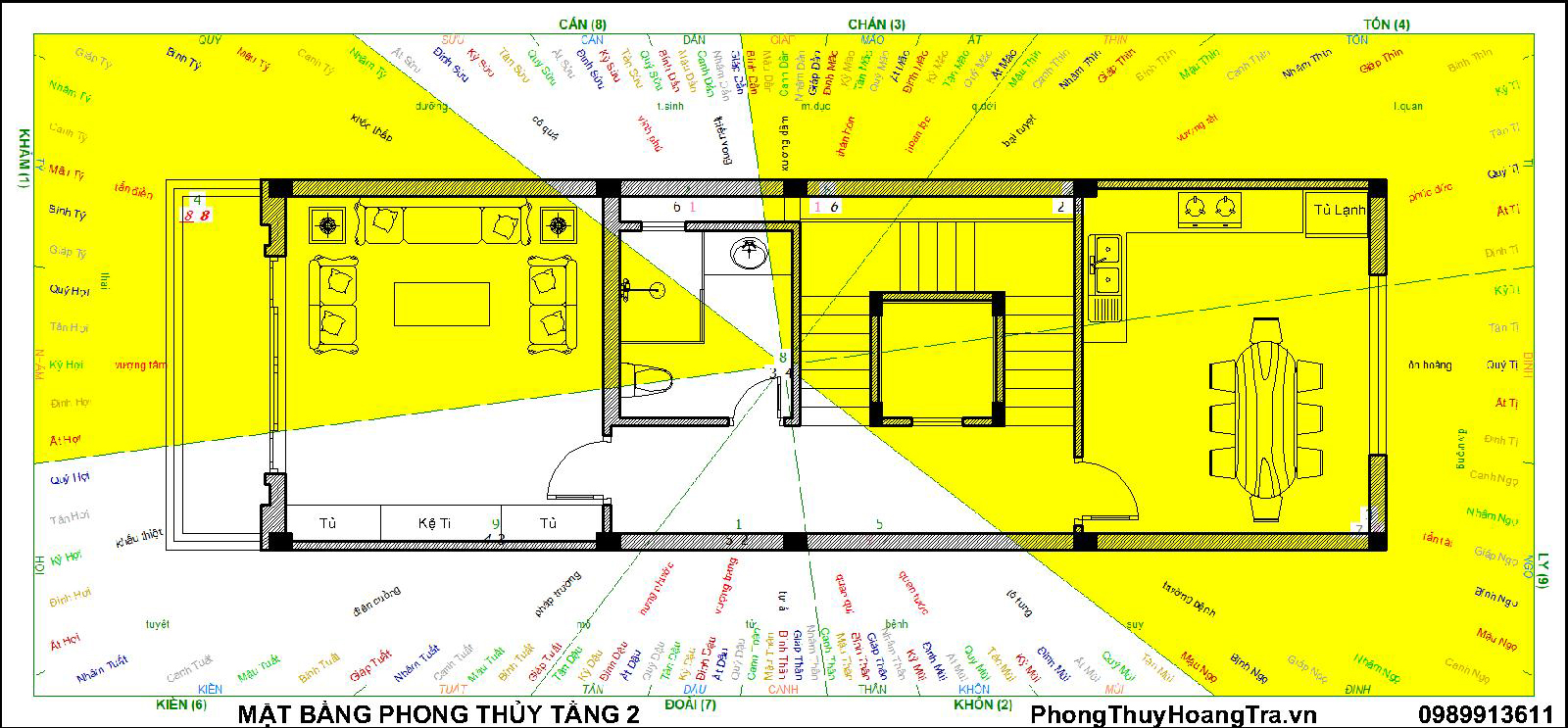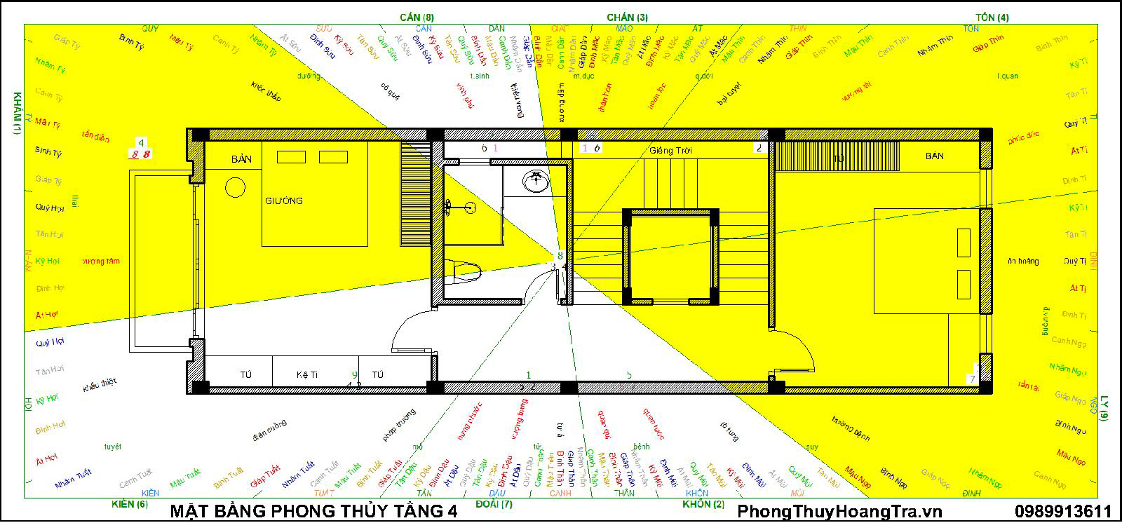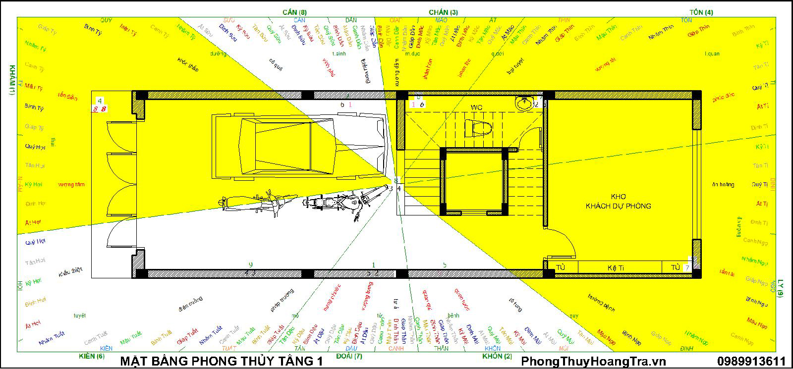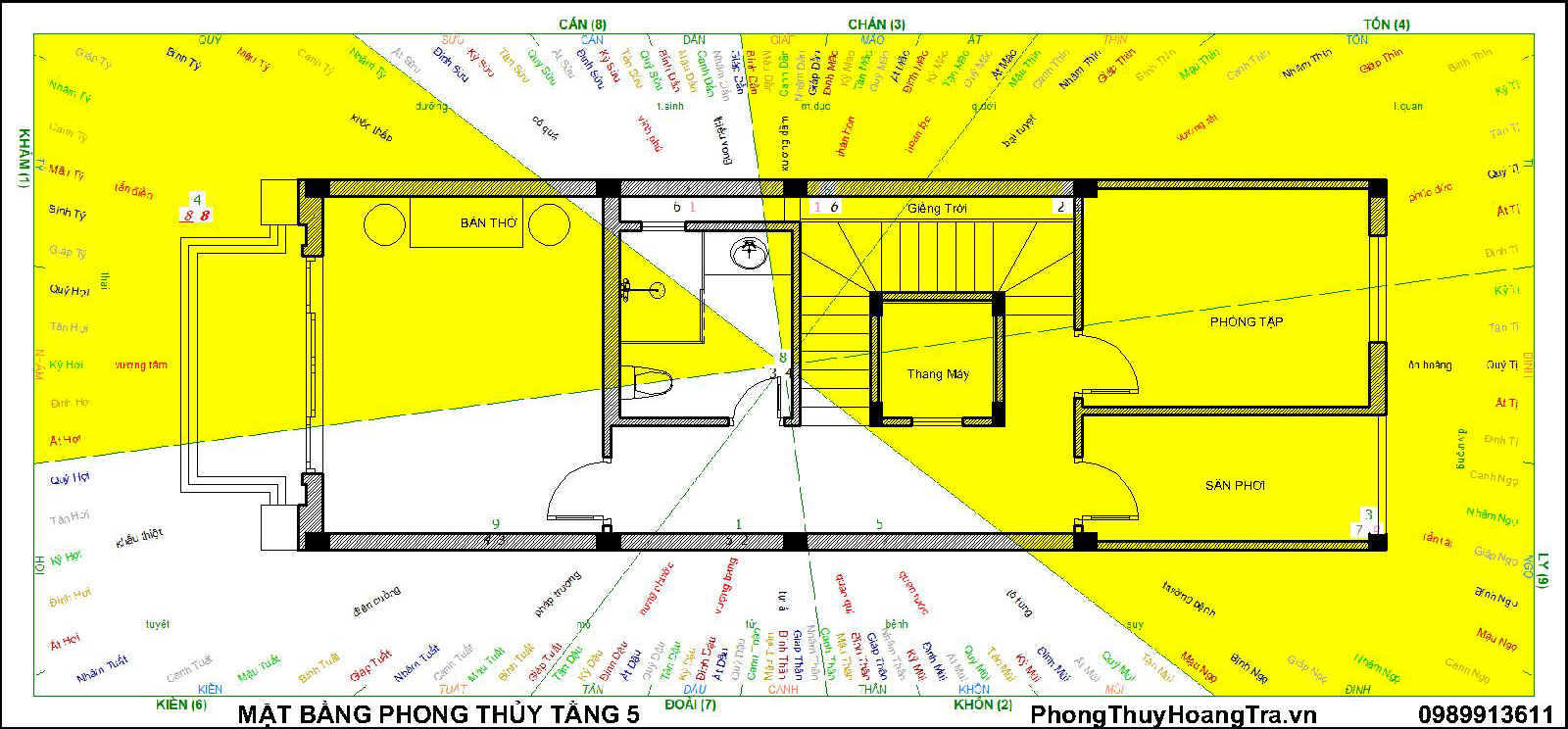Thiết kế kiến trúc theo phong thủy nhà mặt phố 5 tầng tân cổ điển: Tầng 1 có gara và kho. Tầng 2 có khách + bếp + wc. Tầng 3-4 có 2 ngủ khép kín. Tầng 5 có thờ + phòng tập + sân phơi